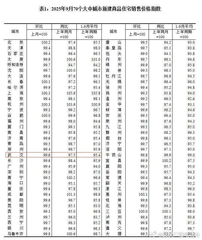 国家统计局10月20日公布数据显示,2025年9月份,70个大中城市中,各线城市商品住宅销售价格环比下降,同比降幅继续呈收窄态势。